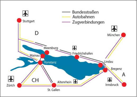 There are mainly flights operated by Lufthansa from Frankfurt International, D (IATA: FRA) to Friedrichshafen but also from some other airports in Europe. From Friedrichshafen to Lindau will take again around 45min by swiss or german public transport . Alternatively, it is possible to use a local ferry (1h 25min). For this you have to take the Bus (nr. 8) or a local train from Airport (Bodensee Flughafen) to the Harbour (Friedrichshafen Hafen).